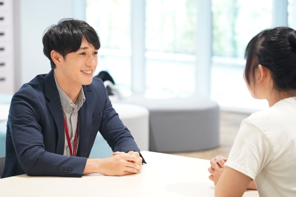 学生支援も主業務の一つであることから、学生に対してもこれらの姿勢を大切にしています。学生の立場に立ってまずは傾聴し、悩みや不安をしっかり受け止め、理解する姿勢を持つようにしています。自分から悩みや不安を相談しづらい学生も少なくないので、自ら進んで声がけしコミュニケーションを取ることも大事にしています。