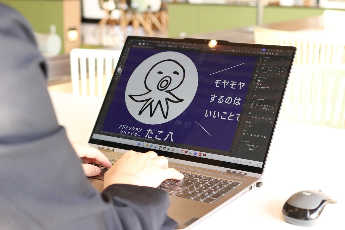 その結果、本学の情報ばかりを詰め込むのではなく、「なんか面白い」「くすっと笑える」ようなコンテンツを配信することで、まずは本学のファンを増やす方針に決まりました。工夫したのは、「たこ八」というオリジナルのキャラクターを作ったこと。このキャラクターがつぶやくような形でゆるい一言コメントを掲載することで、配信が楽しみになるような「ちょうどいいゆるさ」を実現できていると思います。